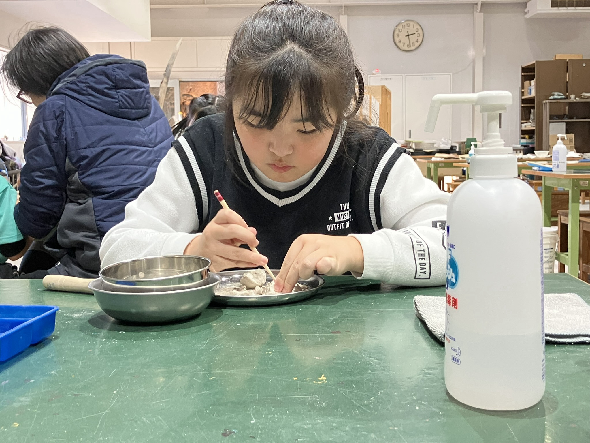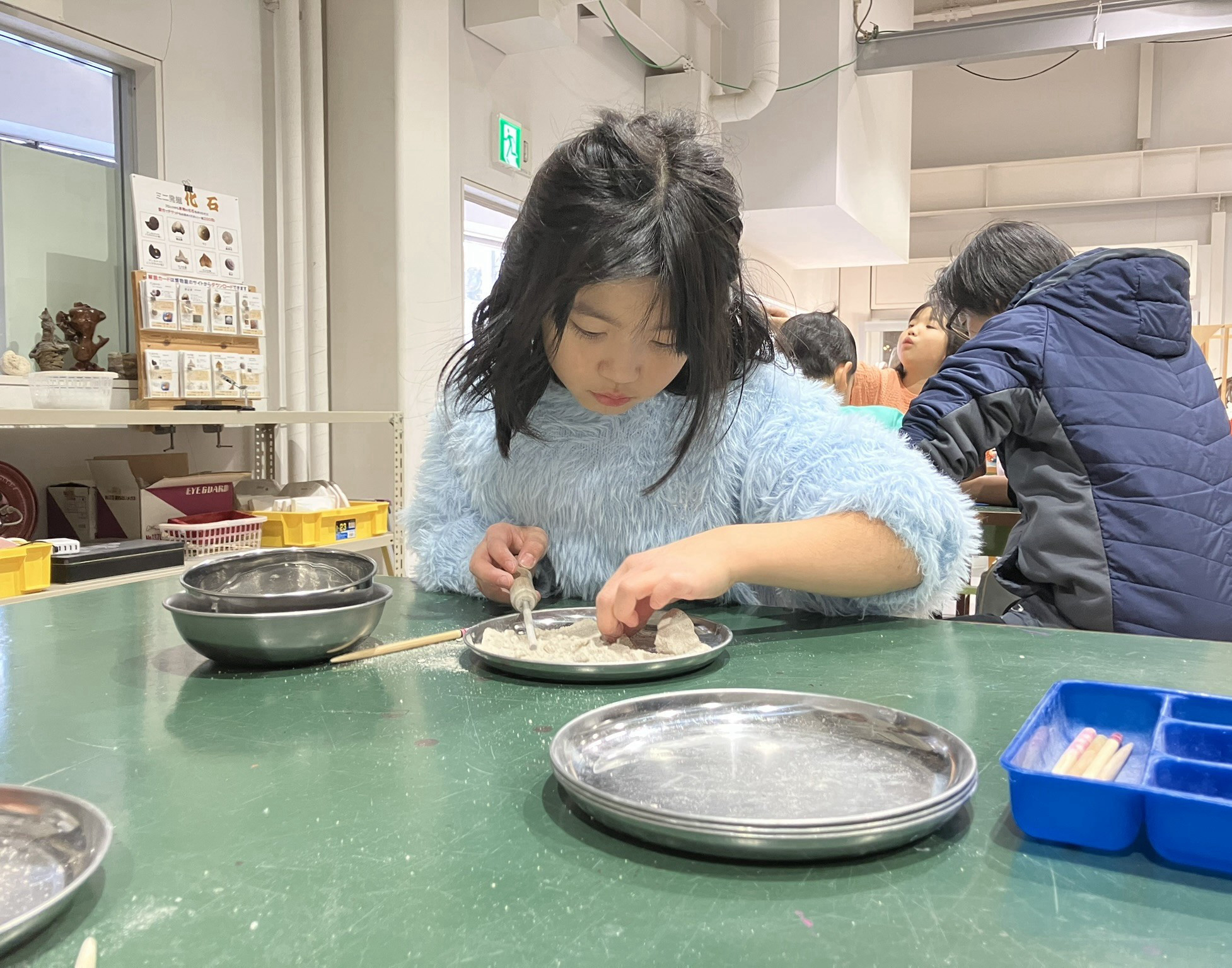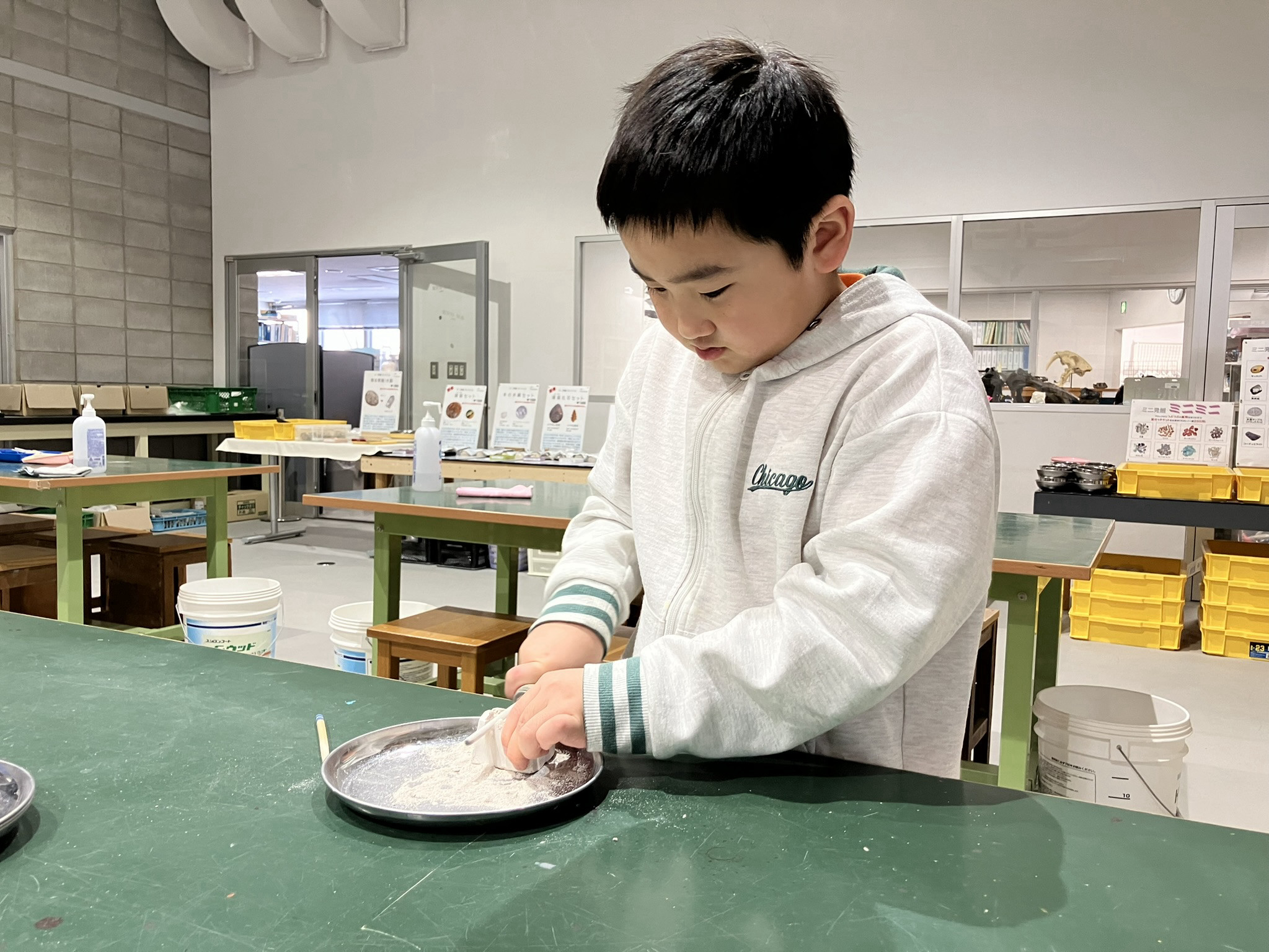 子どもたちが大好きなミニ発掘。とっても真剣な表情で取り組んでいます。