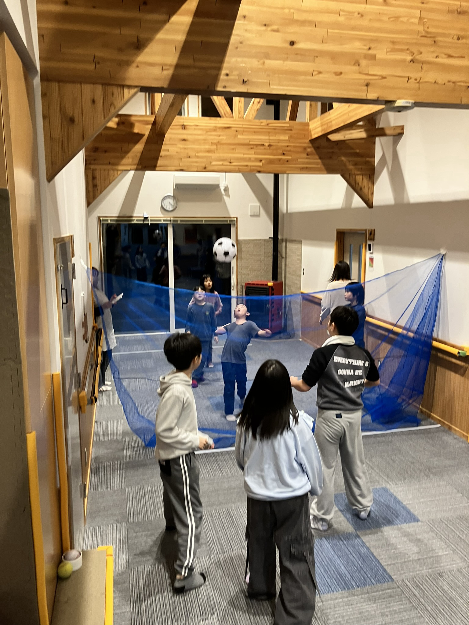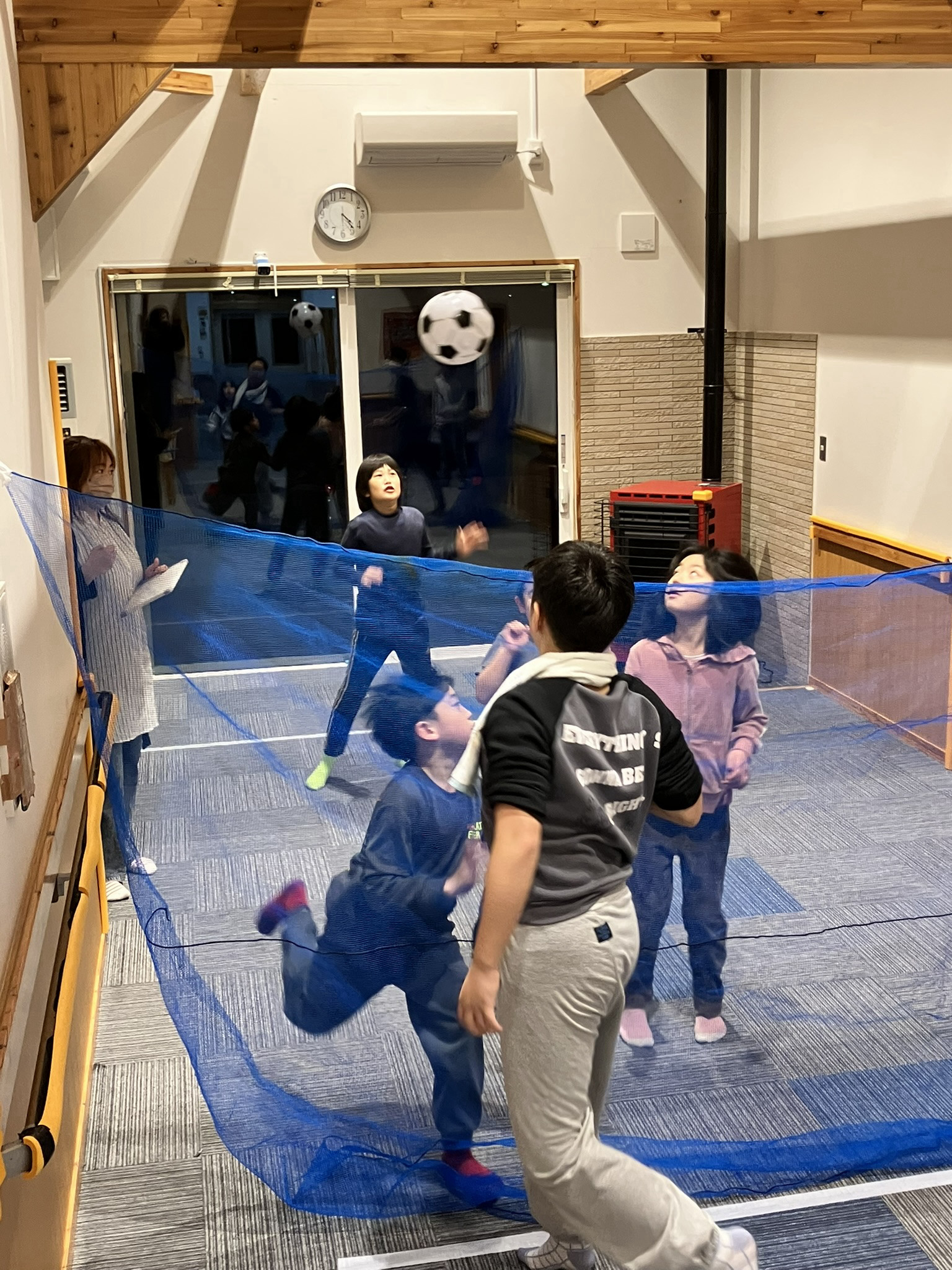 冬休みの前後から、子どもたちが楽しんでいたのはミニバレー。ネット(網?)を張って、何回も楽しんでいました。