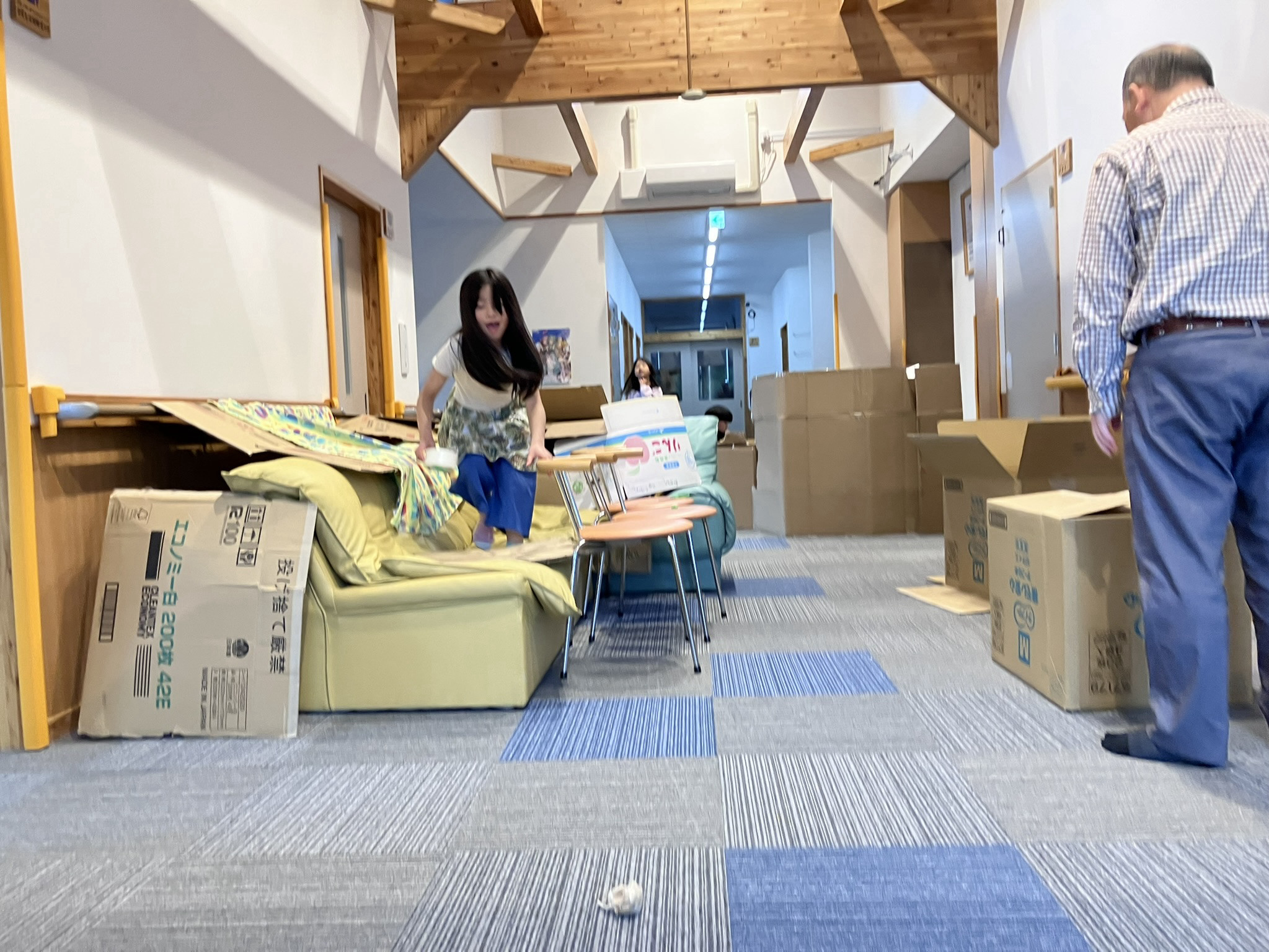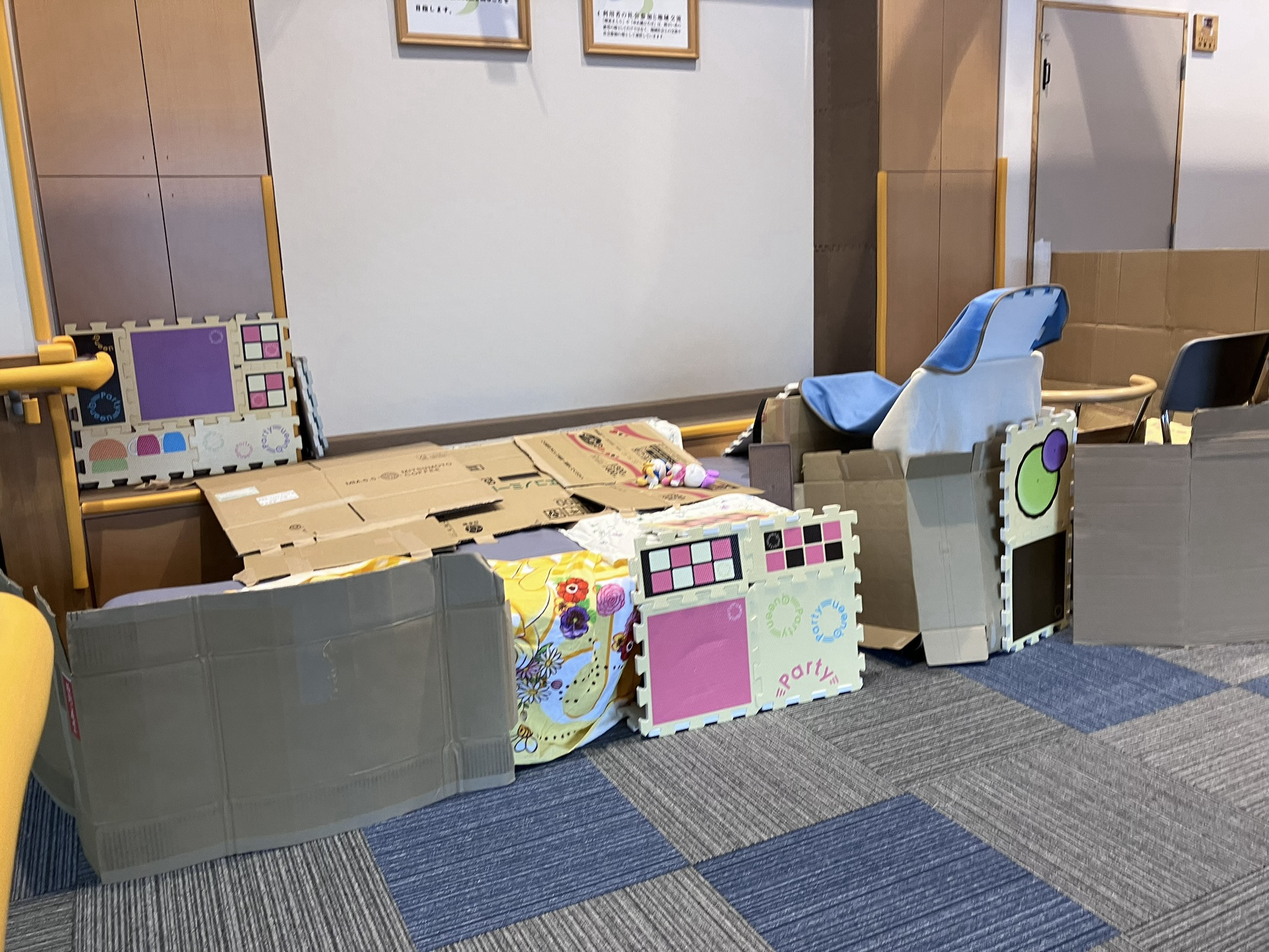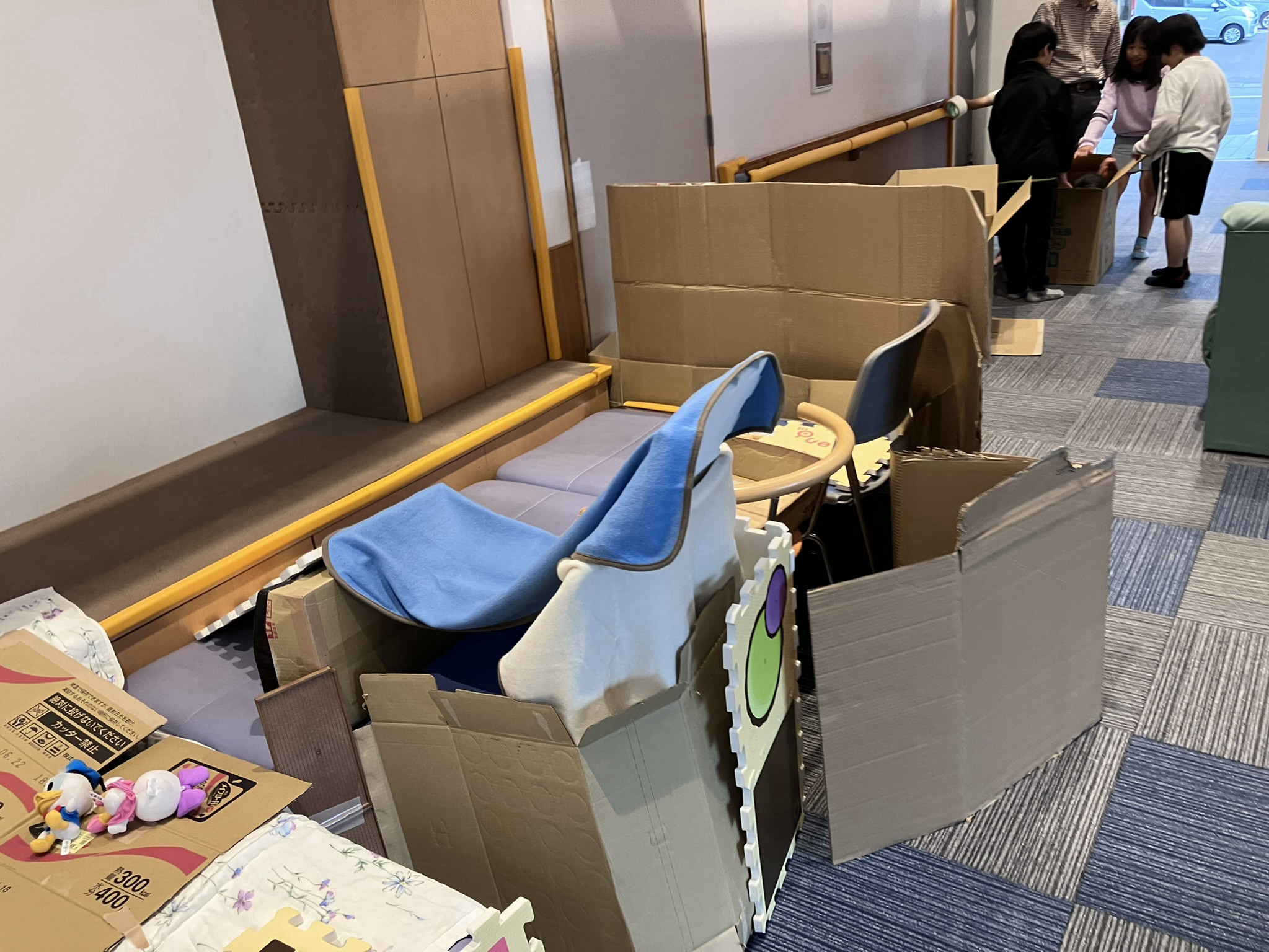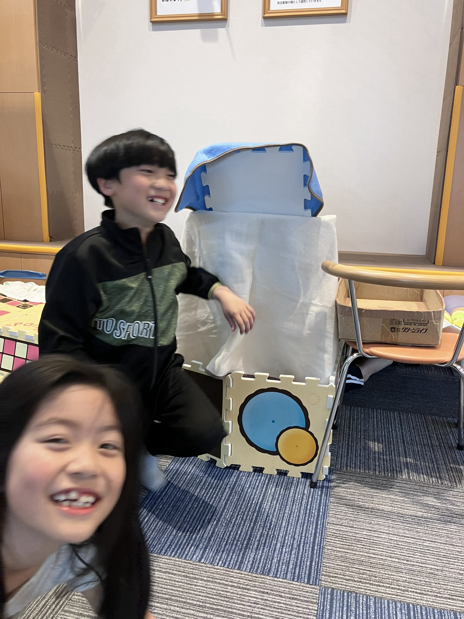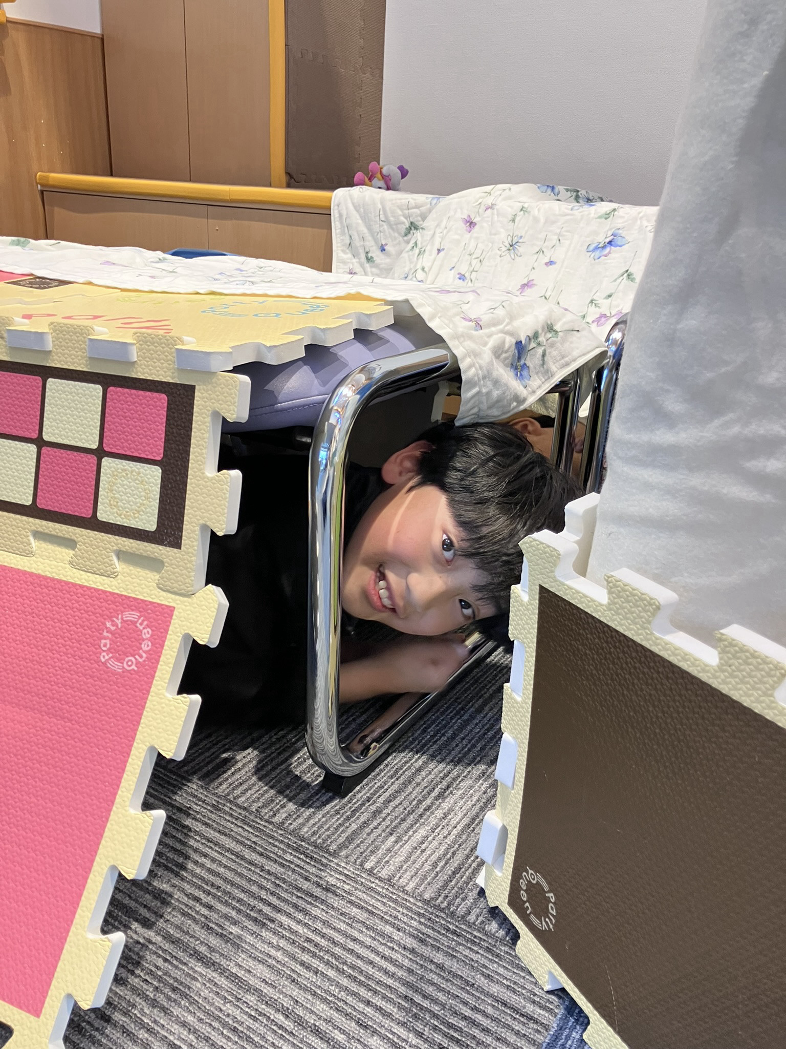 えくぼの子どもたちが突然作り始めた基地づくり。子どもたちは、基地的な隠れ家が好きですよね。