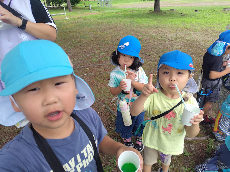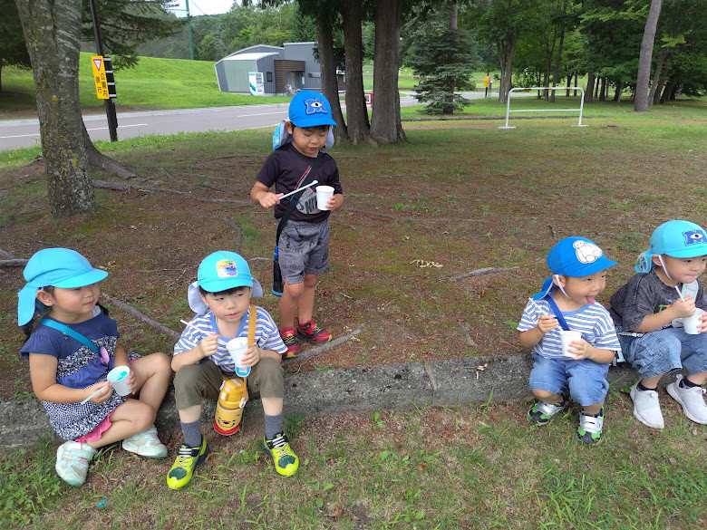 帰りには、園児のみなさんで、かき氷を作ってくれた利用者さんに大きな声で挨拶をしてくれました。利用者さんは、とても嬉しそうに、照れながらも園児のみなさんに笑顔で「どういたしまして」と挨拶をしていました。